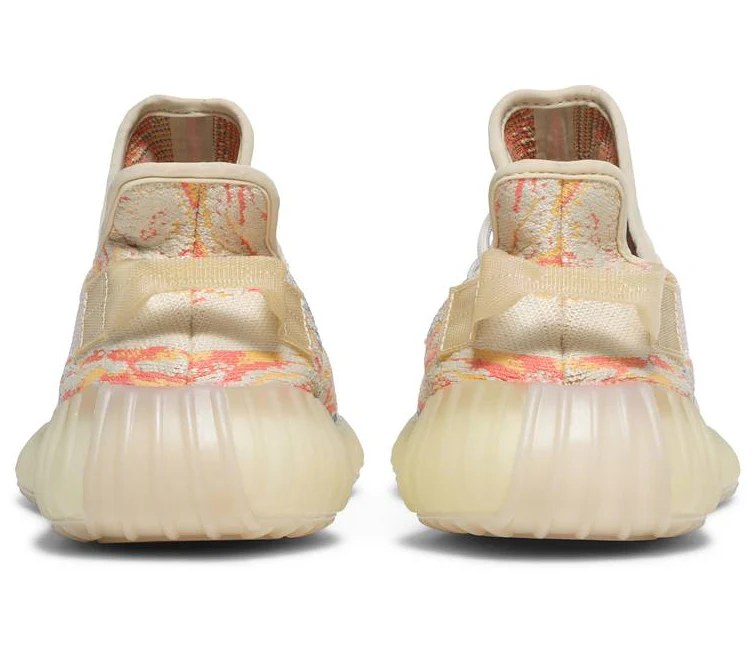 The adidas Yeezy Boost 350 V2 MX Oat' delivers a vibrant departure from the brand's typically muted color palette. The upper is composed of re-engineered Primeknit and features a tan base with swirling hits of yellow, royal blue and fiery orange. The minimalist build is equipped with traditional lace closure, a pull tab at the heel and a post-dyed monofilament side stripe woven into the side panel. Responsive cushioning is provided by a full-length Boost midsole wrapped in semi-translucent rubber.