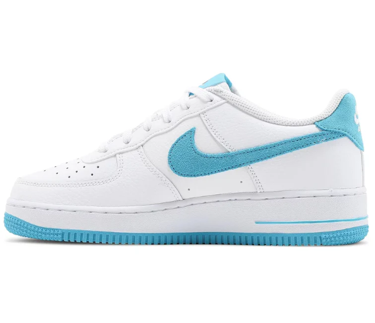 The classic silhouette is crafted from crisp white leather with Light Blue Fury accents, including a suede Swoosh and mismatched tongue tags depicting the likeness of Bugs Bunny and Lola Bunny. The same characters are featured on patches affixed to the lateral quarter panel of each shoe. The low-top rides on a two-tone rubber cupsole, enhanced with encapsulated Air-sole cushioning under the heel.